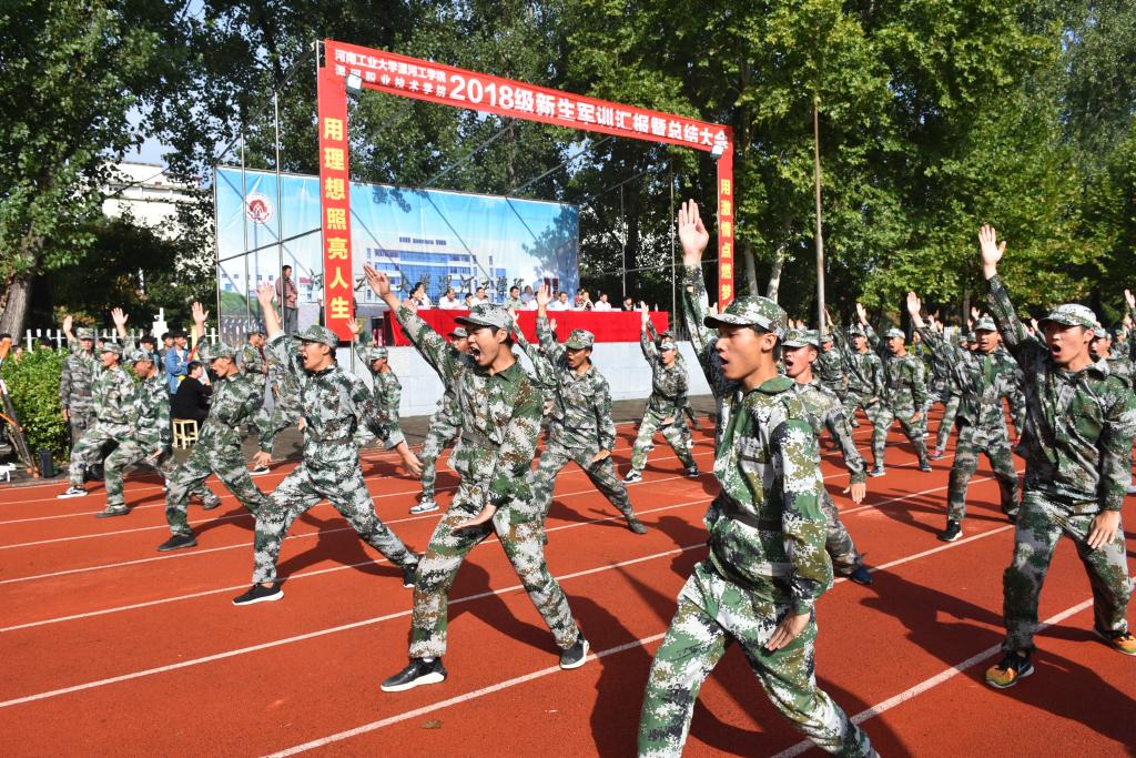 顾文明宣布yl23411、漯河职业技术公司2018级新生军事训练汇报开始。由参训新生组成的22个标兵方队,分别表演了分列式、军人单人队列动作,军体拳、心意六合拳,展示了新生的风采。