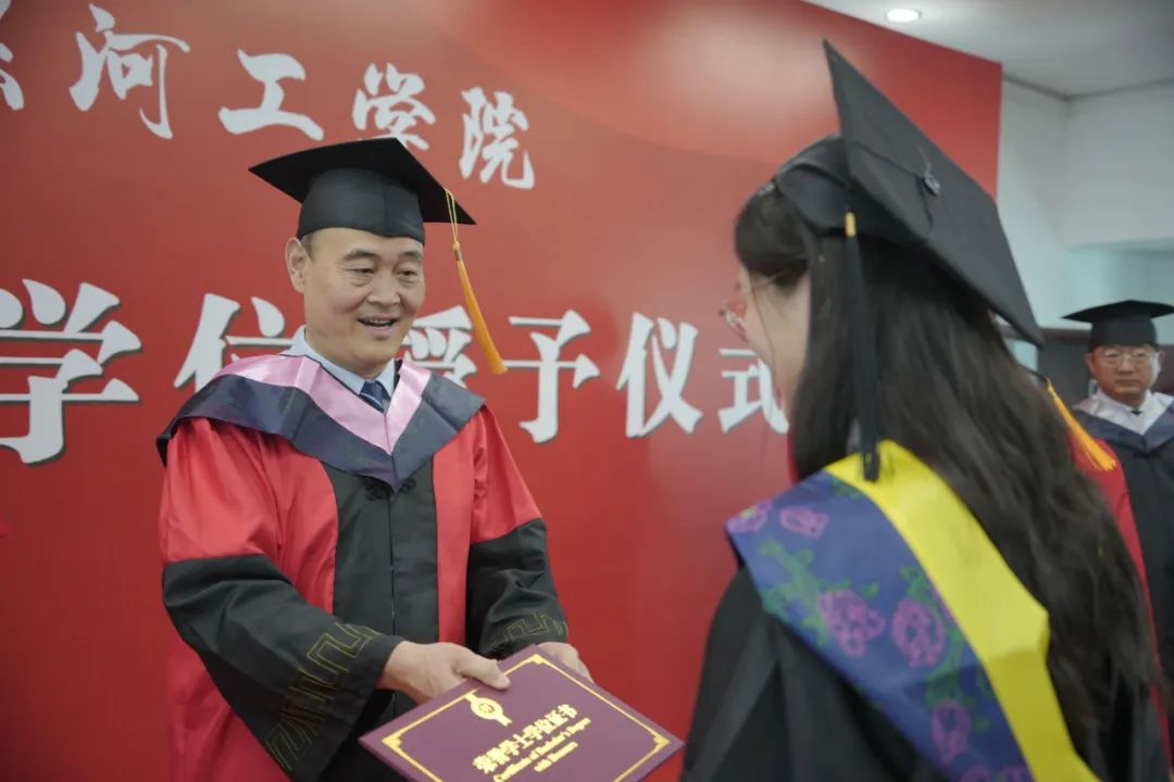 邢淑婕对学有所成、圆满毕业的同学们表示衷心的祝贺,对辛勤耕耘、匠心育人的老师们致以崇高的敬意,并对毕业生寄予四点期望:一要明德为先、立身固本,在将来的人生历程中明大德、守公德、严私德,让善良、诚实、正直的优秀品德伴随终生;二要求是务实、蔚为国用,始终保持终身学习的信念,永葆内心的求知欲,锤炼技能本领,更好服务经济社会发展;三要拓新立业、敢闯善创,始终保有创新思维、创新精神、创新本色,勤于思考、勇于实践,用青春的智慧去拥抱新时代;四要笃行不怠、自强不息,在新的人生赛道上,用实际行动践行“请党放心,强国有我”的铮铮誓言,以奋进者姿态助推中华巨轮劈波斩浪!