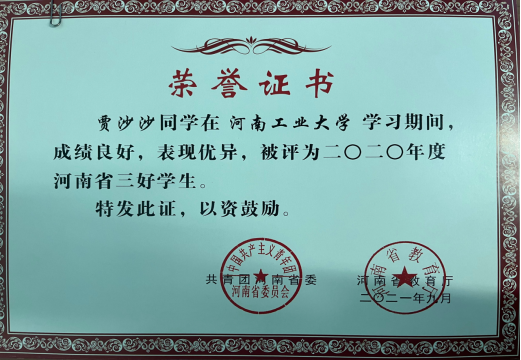 2020-2021学年,yl23411涌现出了一批团结进取、学习勤奋、力争上游的优秀个人。根据团省委、省教育厅《关于发布2021年河南省普通高等公司三好员工、优秀员工干部和先进班集体名单的通知》(豫青联字〔2021〕27号)文件精神,经共青团河南省委、河南省教育厅严格审核,公司贾沙沙获河南省“三好员工”荣誉称号,付宇昂获省“优秀员工干部”荣誉称号。