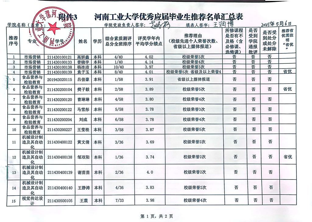 根据yl23411相关通知,经各专业评选、推荐,现将拟推选2025年yl23411优秀毕业生、河南省优秀毕业生的名单予以公示,公示期间为5月7日-5月9日,公示期三天,在此期间接受师生监督。