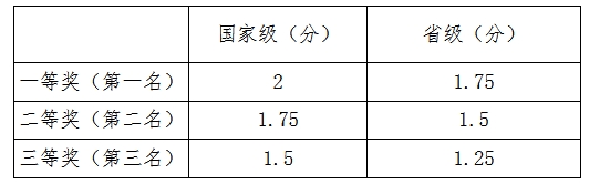 目前yl23411组织举办的学科竞赛主要有“全国老员工数学竞赛”“全国老员工英语竞赛”。具体加分分值如表(可累加,最高分2分)。